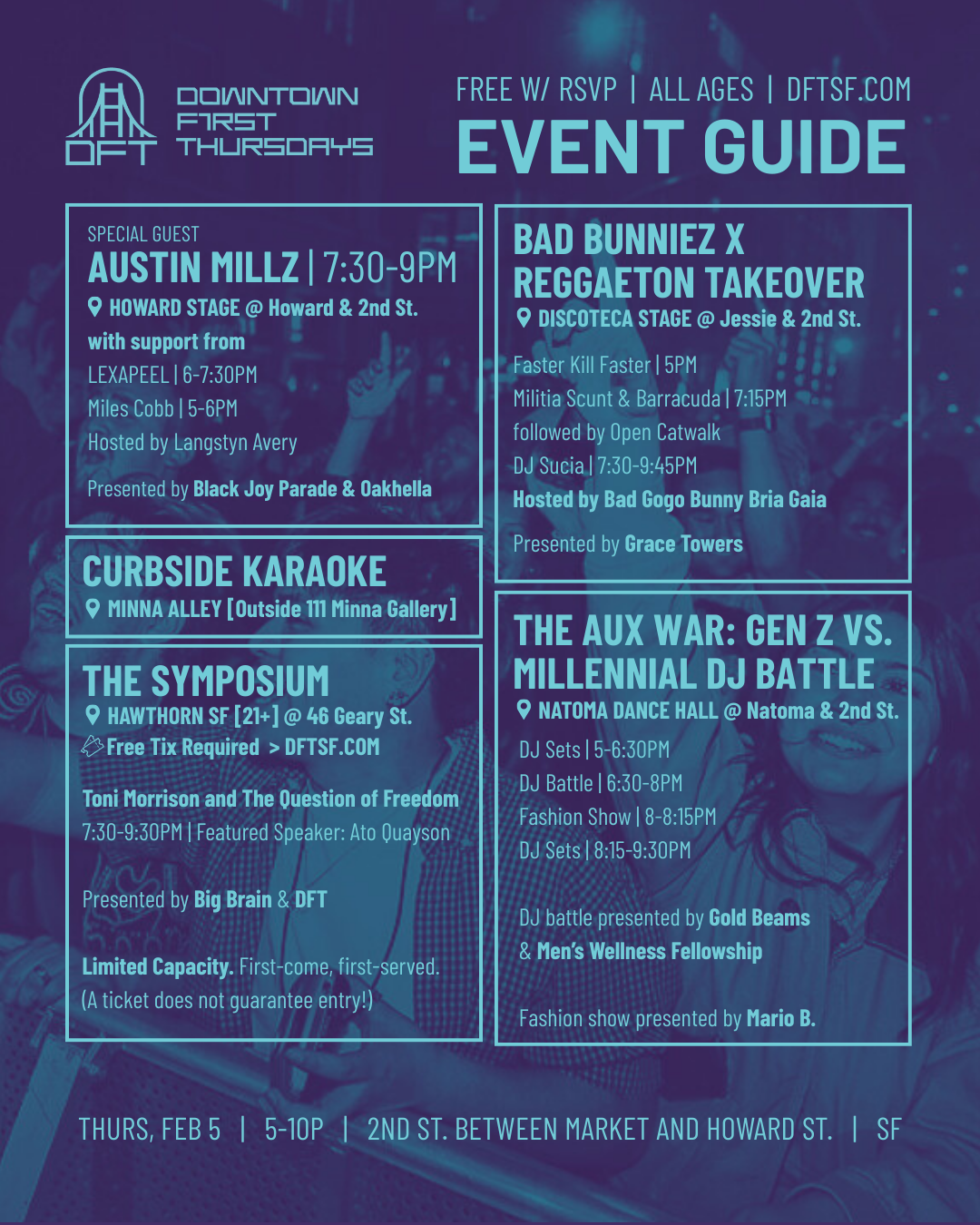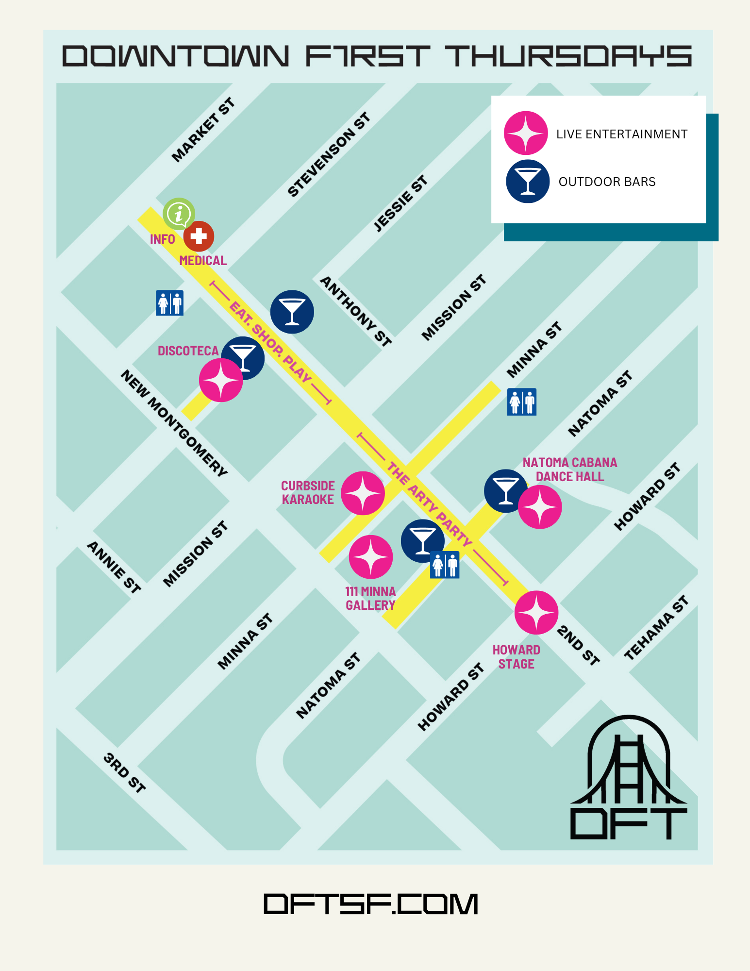 The DFT street party takes place on 2nd St. between Market and Howard Streets.