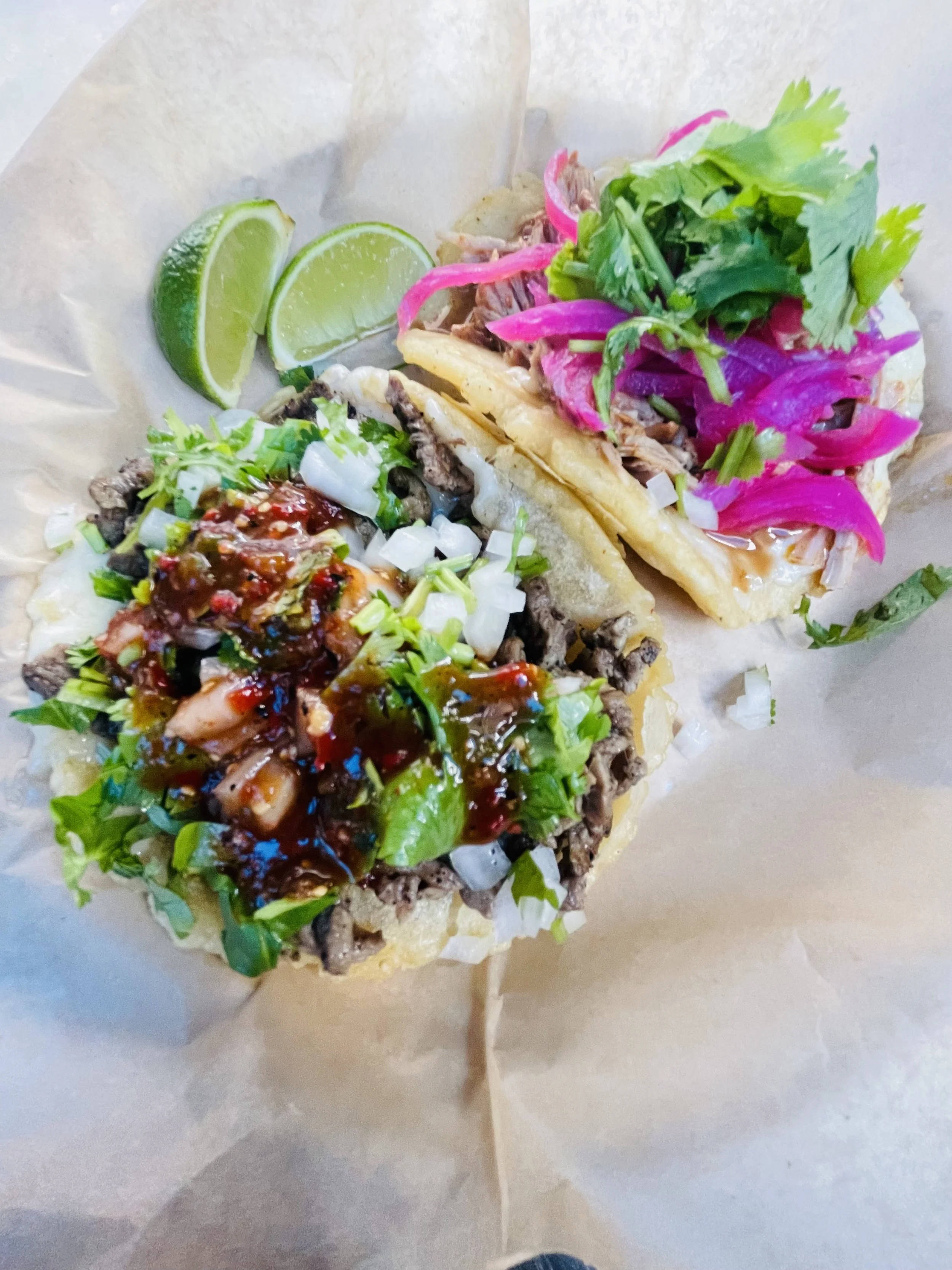 One panucho & One salbut. Traditional dishes from Yucatan. Refried corn Tortilla stuffed with black beans purée + choice of protein. Fried corn tortilla that is puffed up and topped with melted cheese + choice of protein $15.50