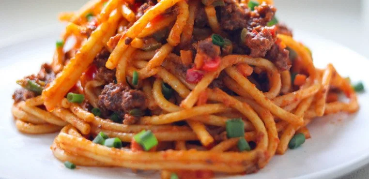Jollof pasta and beef Suya. Pasta cooked tomatoes sauce / Suya is grilled with a kick of pepper and may contain peanut spice. $25
