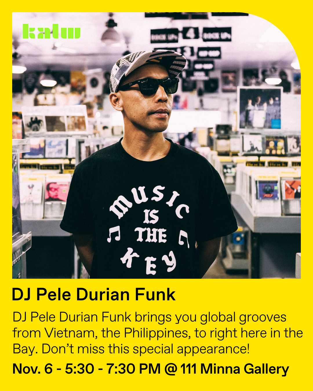 Join KALW & 111 Minna Gallery for a night of international beats from DJ Pele Durian Funk, a live broadcast dance party with Wonway Posibul, plus fashion, art, & fun at Downtown First Thursday.